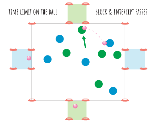 To add excitement, you can implement a 5-second time limit for players holding the ball before they must make a pass.