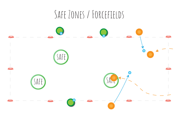 Add hula hoops as PIPES/FORCEFIELD. Students can stand in them for 3 seconds and not be hit before having to move again.