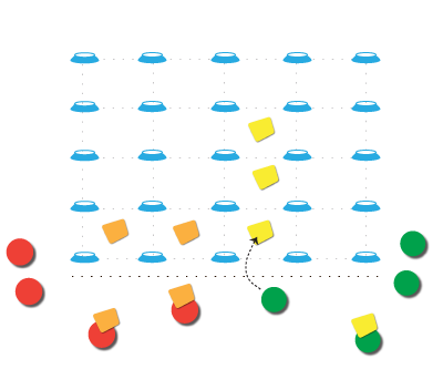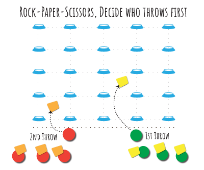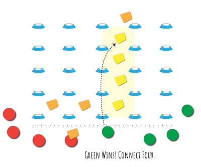 Be the first team to get four of their colored bean bags in a row (horizontally, vertically, or diagonally).