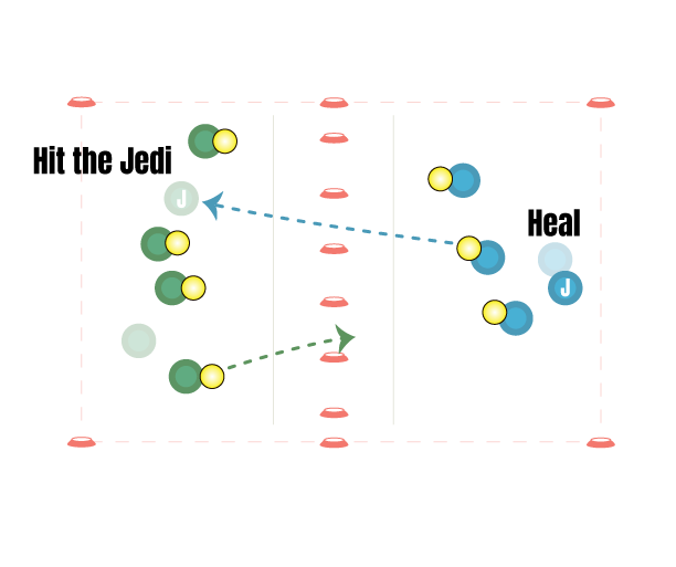 Players can protect their team Jedi, and stop the opposing players from hitting them with a ball.