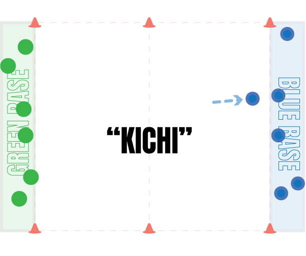 The aim of the game is for one team to get across to the end zone or Kichi (bases in Japanese) located on the opposite side of the area.