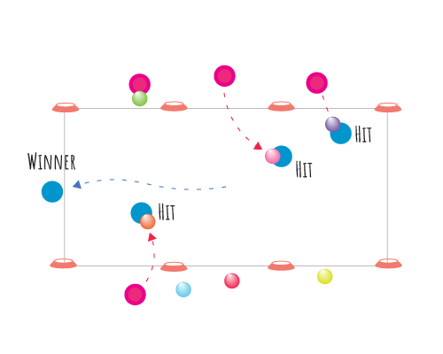 The winner is the individual who successfully reaches the other side without getting hit, and they are the last person to do so.