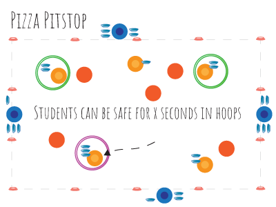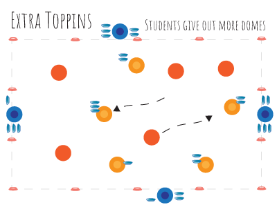Topping Dispensers: Select students to act as "Topping Dispensers" and position them around the perimeter of the playing area. These students hold extra discs/domes ("Pizza Toppings").
