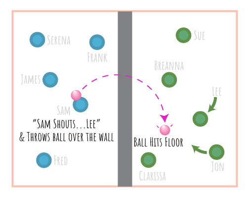 A player with the ball calls out an opponent’s name/number and throws the ball over the wall.