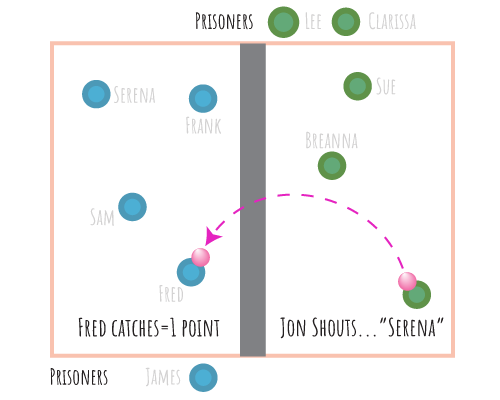 PS - If the ball is thrown over and goes out of bounds, that player loses 1 life. After losing 3 lives, they become a Prisoner.