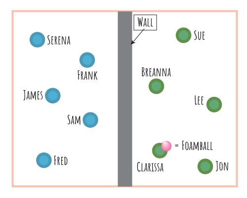 Play rock–paper–scissors to decide which team starts with the foam ball.