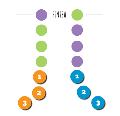 Place two rows of four spots (flat discs) on the floor. The goal is for the students to get to the last spot to win the game.