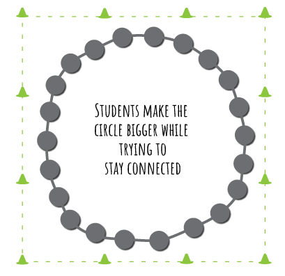 Students start the game by holding hands and creating a circle. When the coach shouts VIRUS, the students start walking backward to make the circle bigger. The first objective of the students is not to let go of the people next to them and stay connected to the circle.