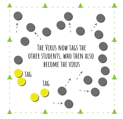 The student who is the virus then attempts to tag other students, who also become the virus, and attempt to tag more students.