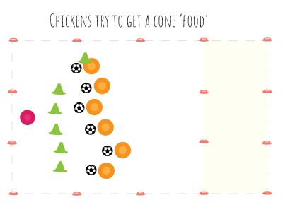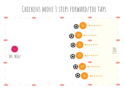 Players line up at one end of the playing area (the "coop"). They are the "chickens" and can make chicken noises for fun!