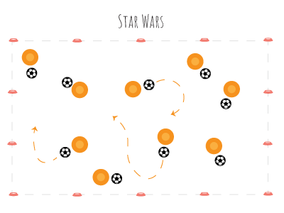Darth Vader's Attack: The coach (Darth Vader) moves around the spaceship, trying to kick the players' balls out of bounds ("into space").