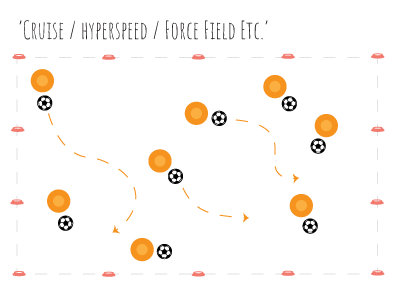 "Cruise": Dribble the ball at a comfortable pace using both feet.