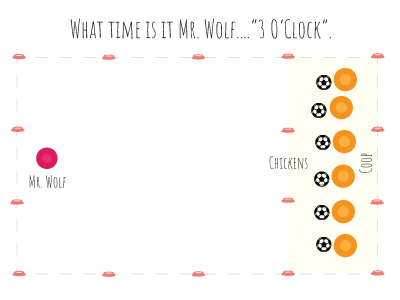 Dinner Time!: At any point, Mr. Wolf can shout "Dinner time!" and chase the chickens back to their coop.
